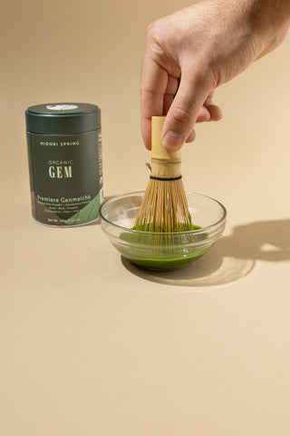 - In a serving glass add your genmaicha powder followed by hot water. Let steep for 4-5 minutes.